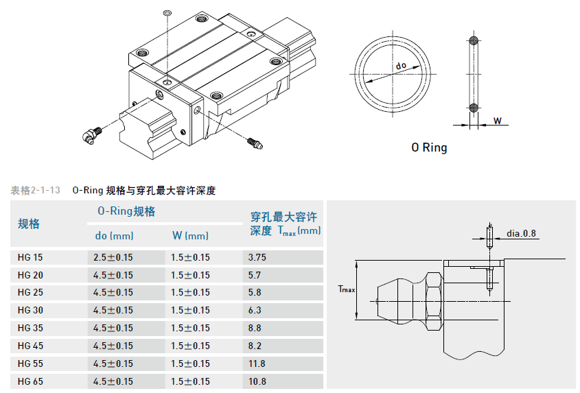依客戶需要在滑塊前端或后端裝上油嘴以供手動打油,HG系列特別在端蓋側邊預留側油孔位置安裝油嘴(一般為直油嘴),提供側向打油,側向打油的位置建議在非側基準邊,但若有特殊需要亦可放在側基準邊。客戶如有上述側向打油需求請與我們聯(lián)絡。使用接管方式自動供潤滑油脂之直線導軌,則可依連接管型式選用安裝油管接頭。