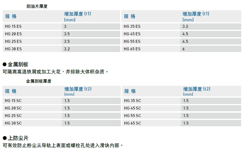 直線導軌HG系列防塵配備