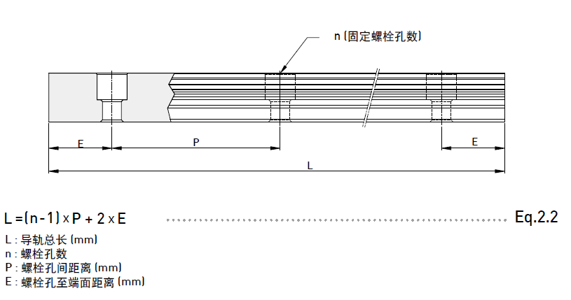 HIWIN 備有導(dǎo)軌標(biāo)準(zhǔn)長度庫存供應(yīng)客戶需求。若客戶訂購非標(biāo)準(zhǔn)長度導(dǎo)軌時(shí),端面距離E的尺寸最好不要大于1/2P,防止因E的尺寸過大導(dǎo)致導(dǎo)軌裝配后端部的不穩(wěn)定,而降低直線導(dǎo)軌的精度。