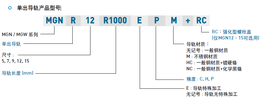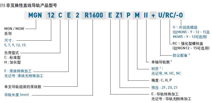 (1) 非互換性直線導(dǎo)軌產(chǎn)品型號