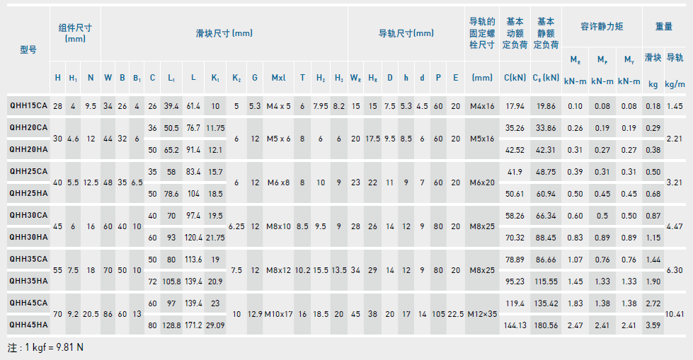QH系列直線導(dǎo)軌尺寸表