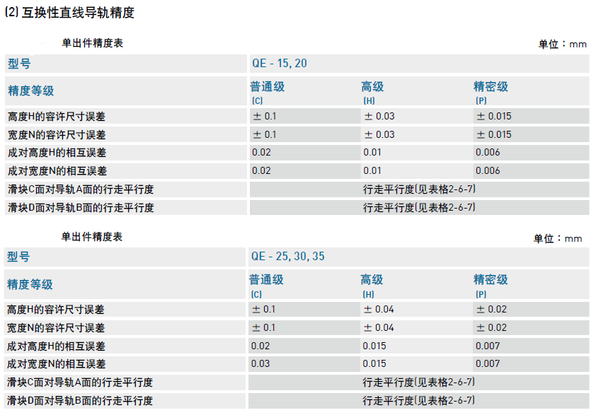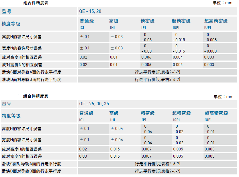 靜音式低組裝QE系列直線導(dǎo)軌精度等級(jí)對(duì)照表