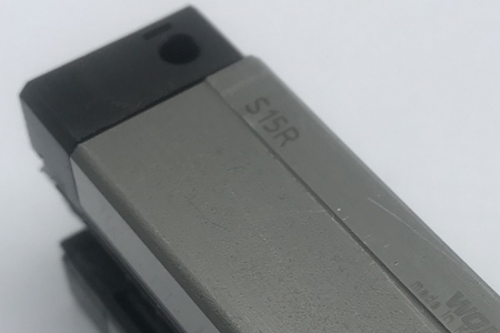 E2自潤(rùn)式直線導(dǎo)軌,在端蓋與刮油片之間帶有潤(rùn)滑機(jī) 構(gòu),滑塊最外端備有可拆換式油箱,其構(gòu)造如圖所示。 藉由可拆換油箱提供潤(rùn)滑油至潤(rùn)滑機(jī)構(gòu),由潤(rùn)滑機(jī)構(gòu)潤(rùn) 滑導(dǎo)軌珠槽。 油箱內(nèi)含導(dǎo)油組件,其特定的立體狀使滑塊在任意擺置 或油量較少時(shí)均能接觸到潤(rùn)滑油,而將油箱內(nèi)之潤(rùn)滑油 徹底吸出使用。