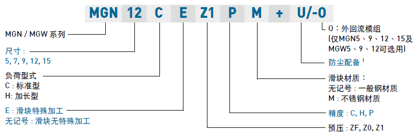 (1) 非互換性直線導(dǎo)軌產(chǎn)品型號