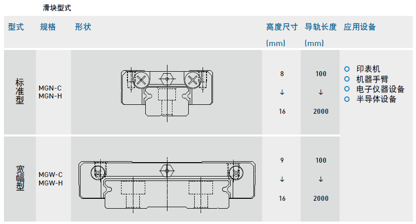 (2) 互換性直線導(dǎo)軌產(chǎn)品型號