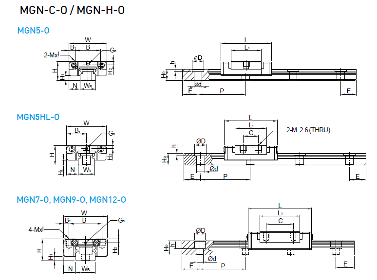 在MGN-O中,它同樣具體體積小、輕量化,滑塊主體的一部分采用了樹脂材料,重量減少約20%,特別適合小型化設(shè)備使用。不銹鋼材質(zhì)之線性滑軌,包含滑塊、滑軌及其它金屬配件如鋼珠、保持器等,皆使用不銹鋼材質(zhì),具備防銹的特性。采用哥德型四點(diǎn)接觸設(shè)計(jì),可承受各方向負(fù)荷,具備剛性強(qiáng),精度高等特性。有鋼珠保持器設(shè)計(jì),在精度允許下具備互換性。