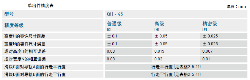 靜音式重負(fù)荷型滾珠直線導(dǎo)軌QH系列精度等級(jí)