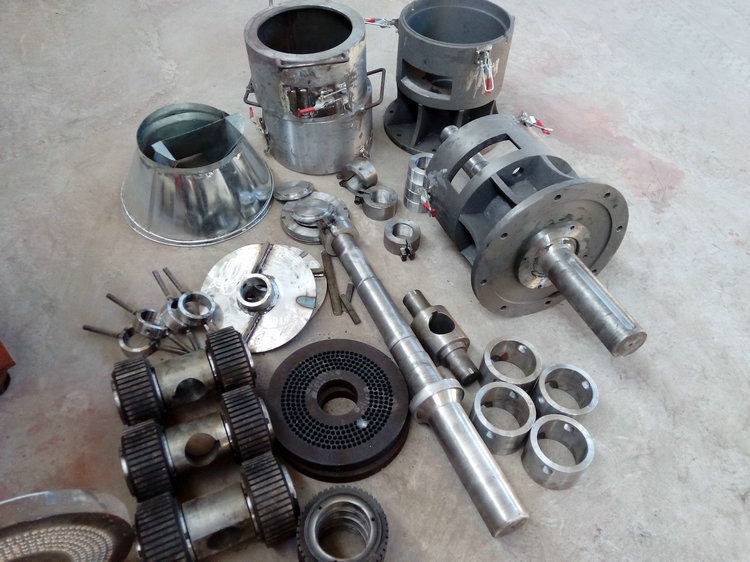 是把模輥付輥輪設計成圓錐體,從而使模輥之間接觸線上各點線速度相等,輥輪在平面上滾動而不滑動,減少阻力,延長使用壽命。在模輥付中,通過模板轉動或是支架轉動實現(xiàn)輥輪沿模板平面做相對運動,物料則在模輥之間進行擠壓,由旋轉輥輪強迫通過??壮尚汀?
