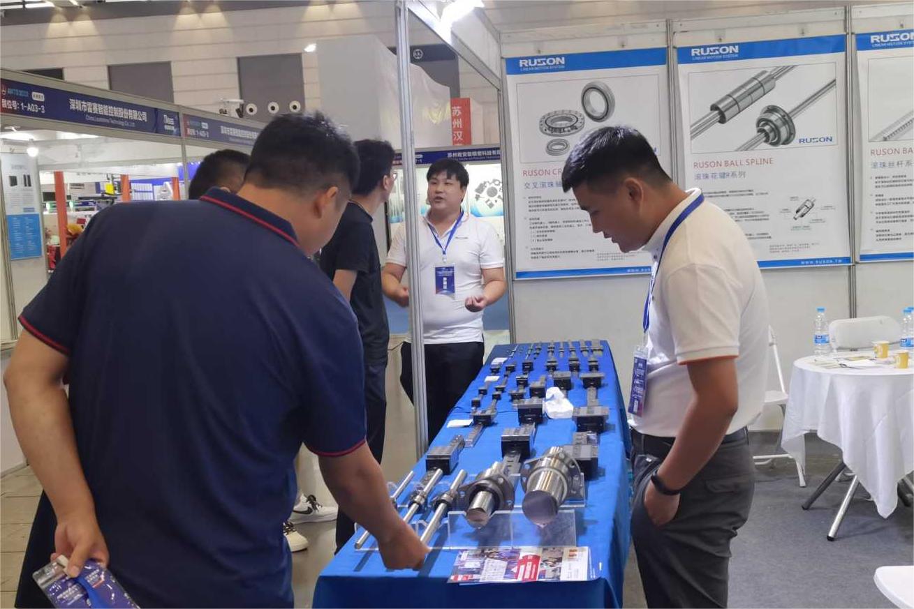 展會現(xiàn)場負(fù)責(zé)人員介紹RUSON系列產(chǎn)品,直線導(dǎo)軌、絲桿、花鍵。
